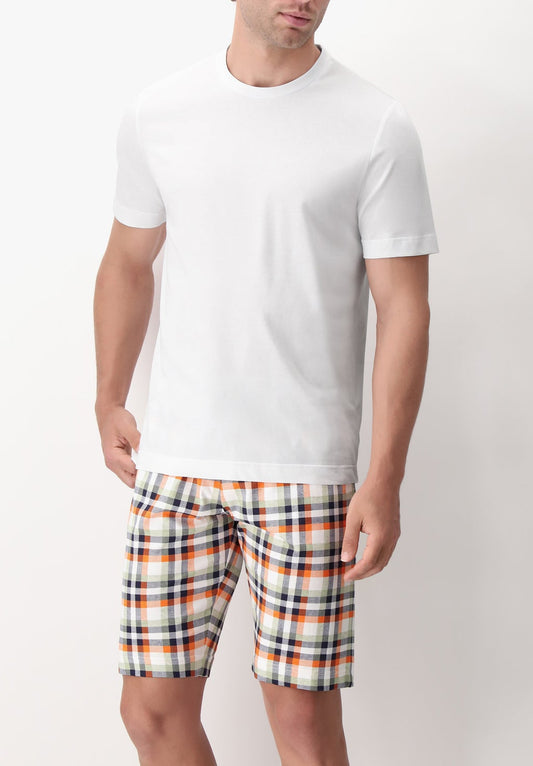 PIGIAMA CORTO UNISEX GIROCOLLO IN COTONE JERSEY STAMPA CHECK PEROFIL