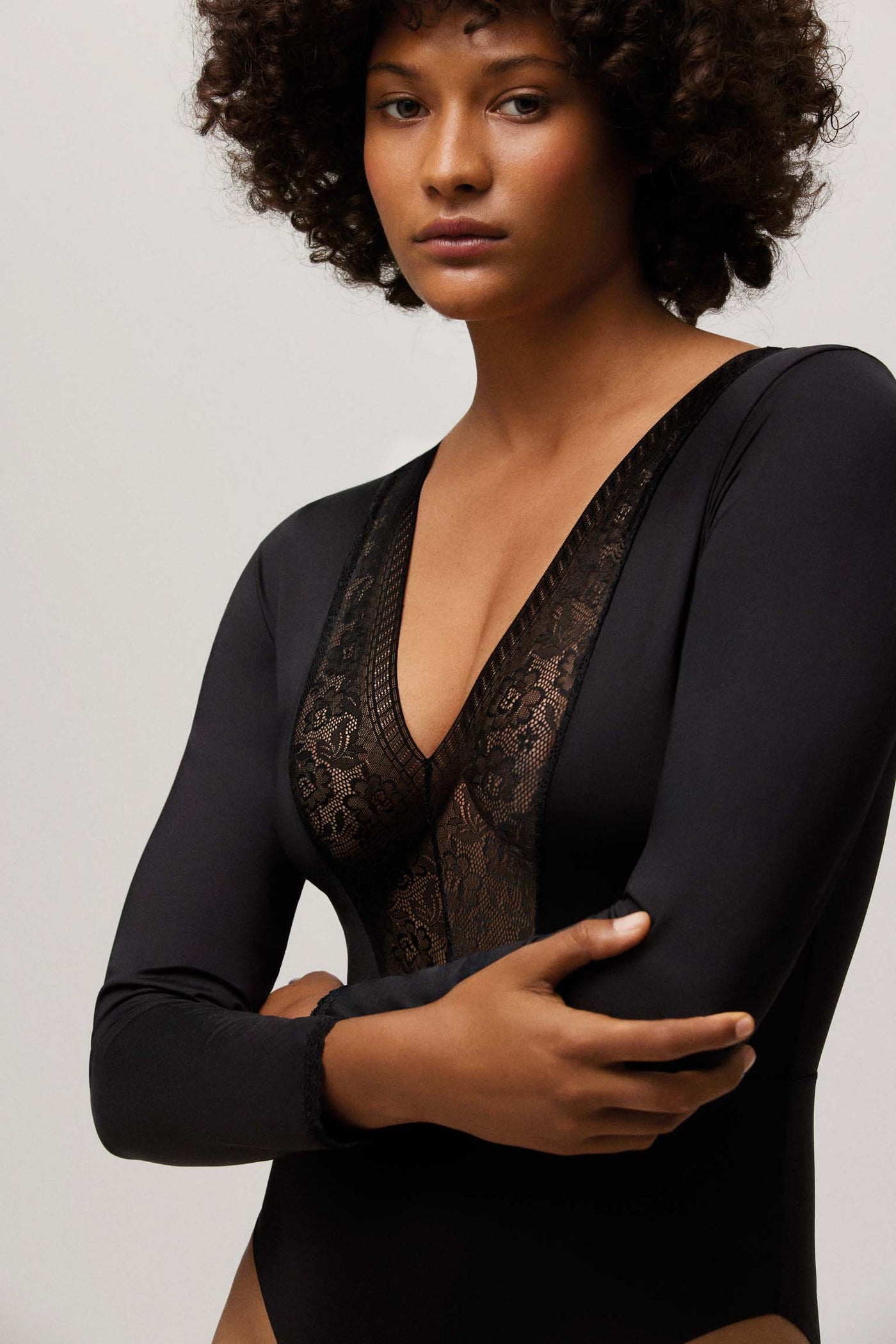 BODY MANICA LUNGA SCOLLO A V NERO YSABEL MORA