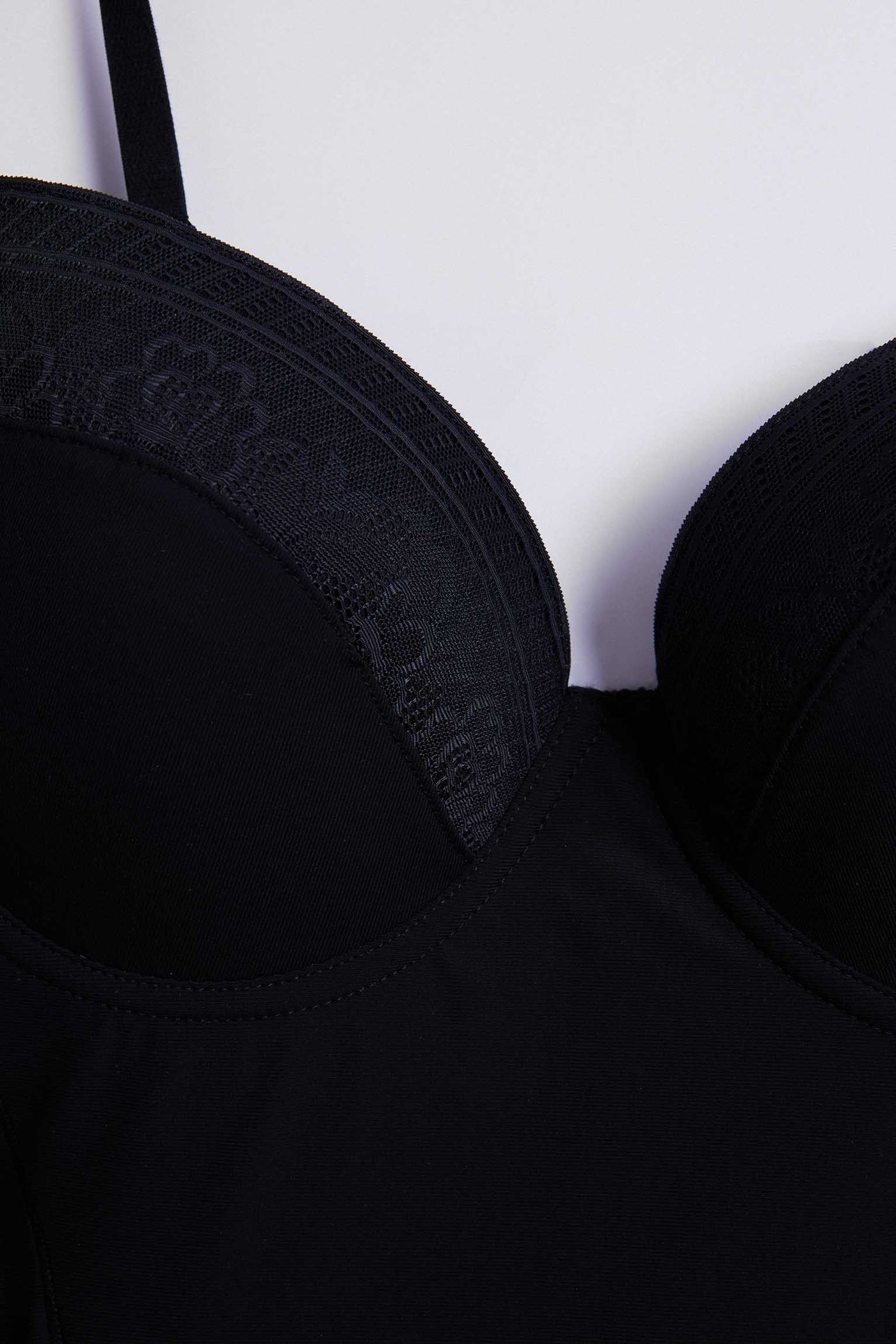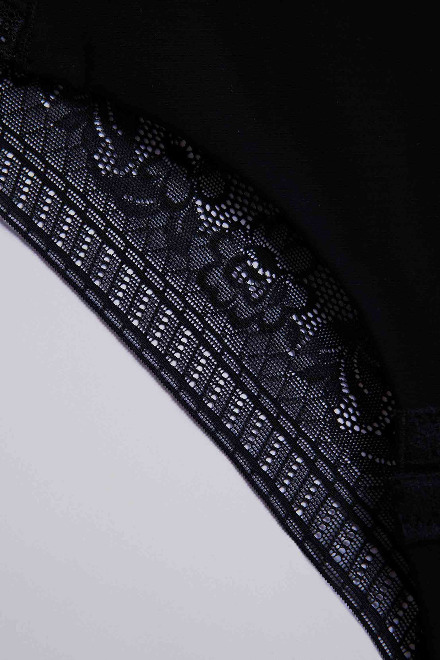 Il pizzo floreale tagliato al laser sui glutei ha effetto perizoma ed è modellante.