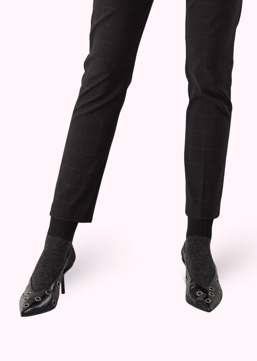 Il bordo comfort alto con lavorazione a coste elasticizzate garantisce una calzata perfetta senza stringere, arricchito da delicati fili lamé che donano un tocco luminoso ed elegante.