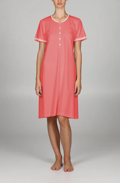 Camicia da notte donna in fresco jersey 30/1 di puro cotone pettinato.
