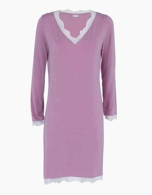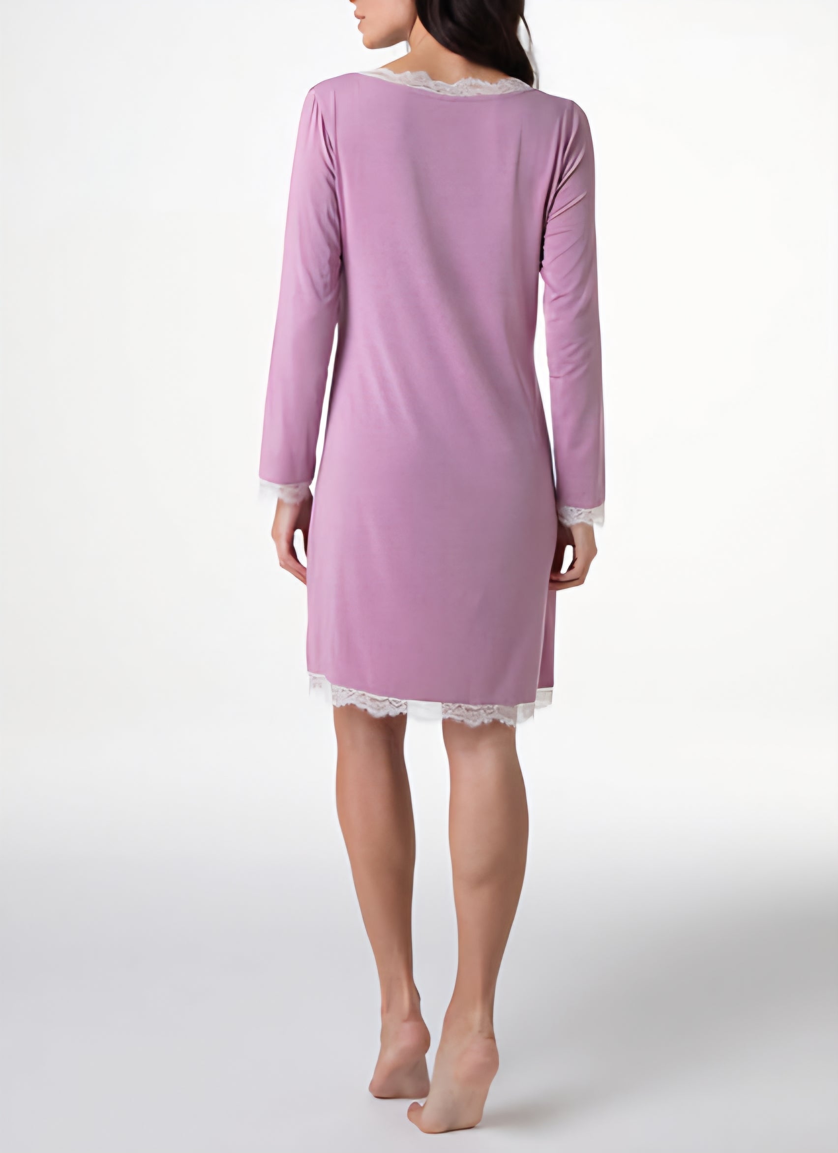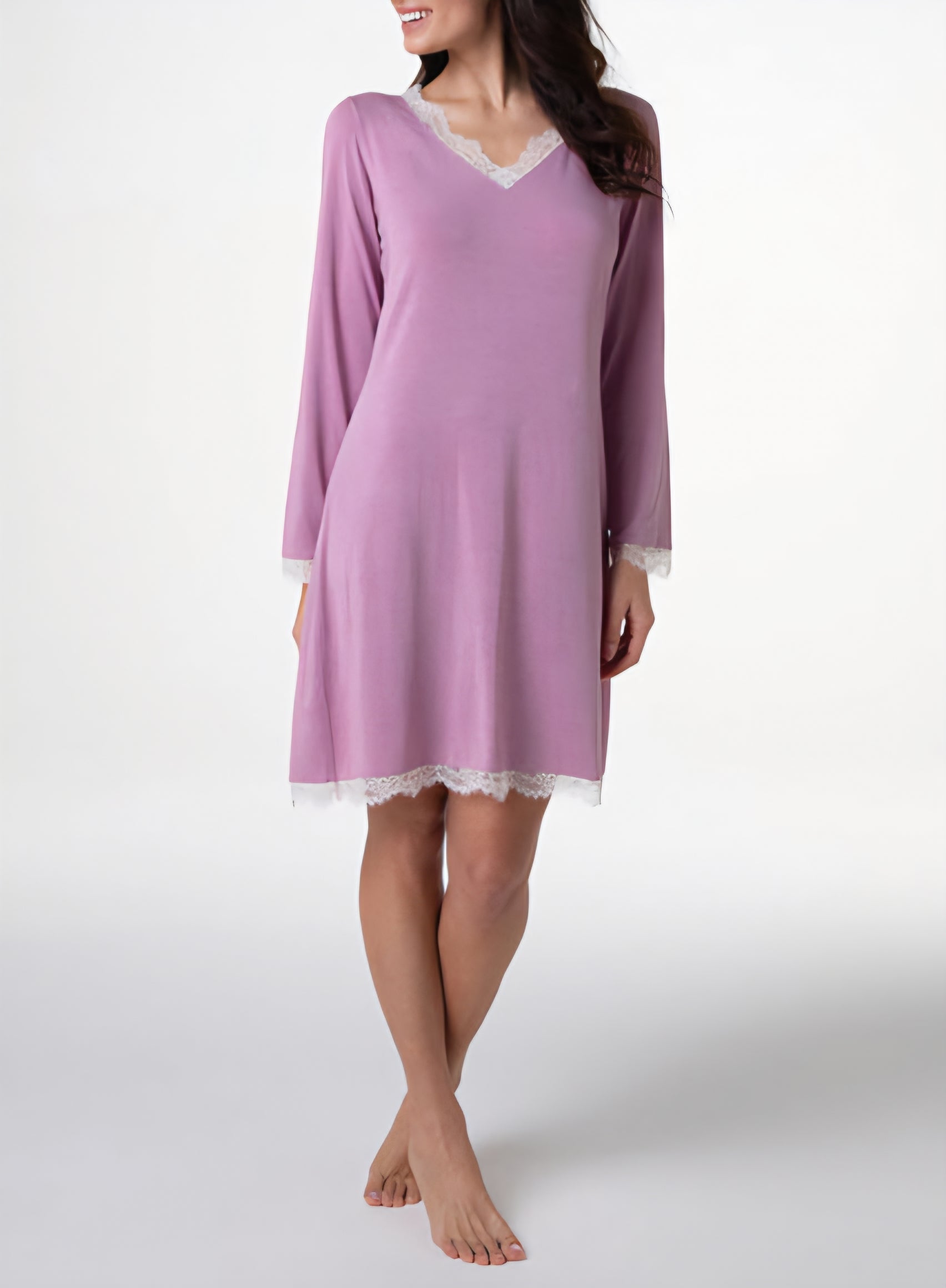 Scopri la camicia da notte manica lunga in jersey di modal elasticizzato, nella delicata tonalità rosa orchidea, pensata per chi cerca morbidezza, comfort e un tocco di eleganza durante il riposo. Il modal è un tessuto naturale noto per la sua incredibile morbidezza e leggerezza, che avvolge il corpo con comfort in ogni stagione.