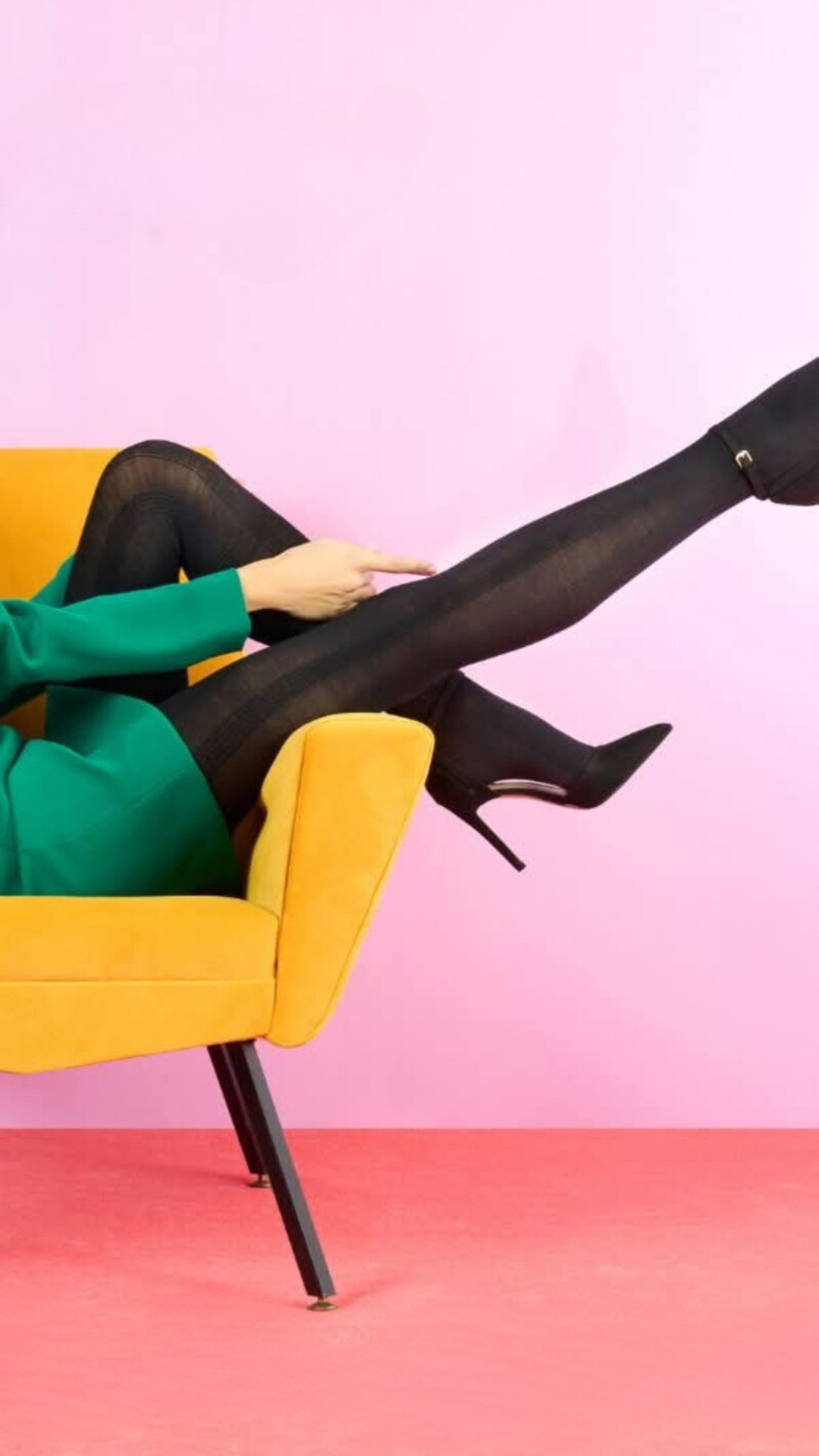 Collant moda supercoprente con lana con motivo di costine. Morbido, caldo e confortevole.