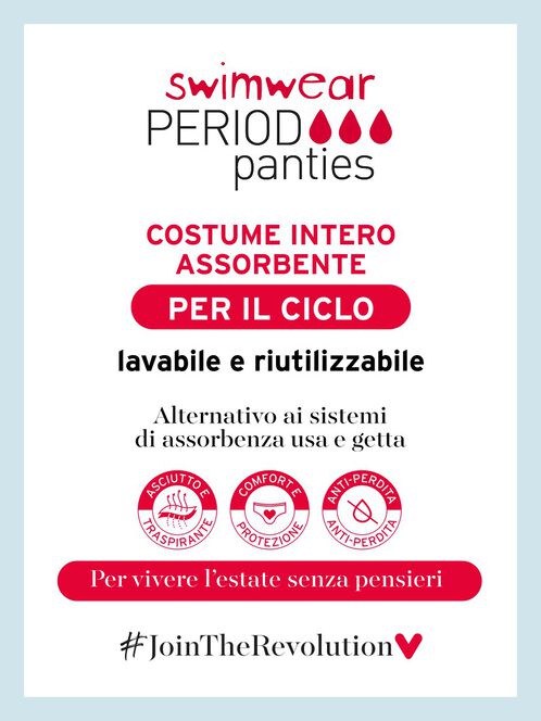 Il costume intero ti semplifica la vita! È l'ideale per vivere in libertà la tua estate in spiaggia o a bordo piscina, anche nei giorni del ciclo.