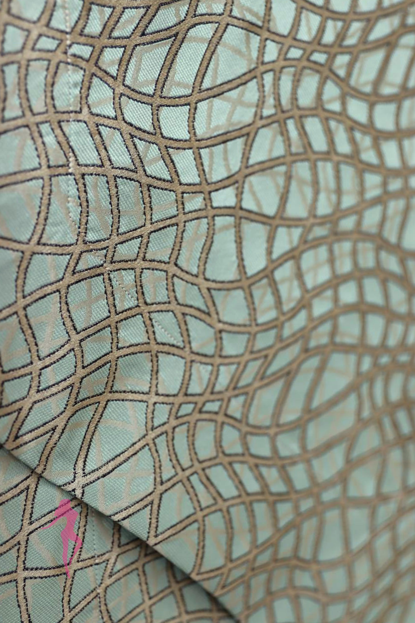 Il colore Bamboo, raffinato e naturale, si sposa con l’esclusivo motivo geometrico in rilievo, donando movimento e luminosità al tessuto. L’orlo a rete rifinisce il capo con un tocco distintivo e prezioso.