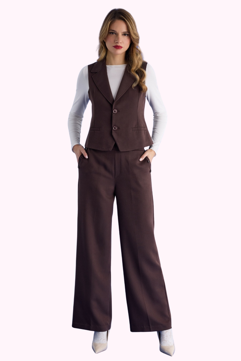 Un capo moda raffinato che aggiunge un tocco sartoriale ad ogni look. Realizzato in morbida viscosa, questo gilet è caratterizzato da un design elegante con finte taschine frontali e chiusura a due bottoni.