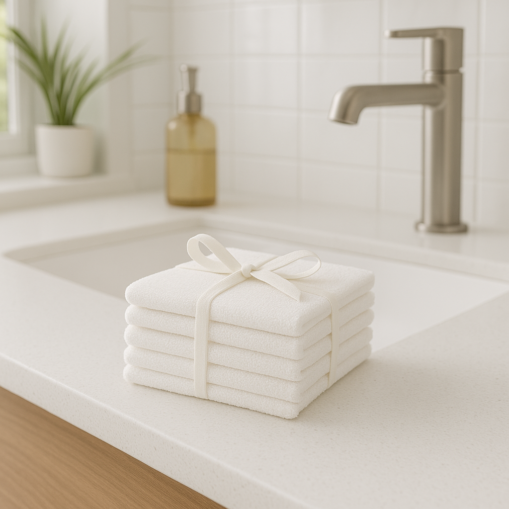 Lavette in spugna idrofila 100% cotone pettinato 420 g/m, morbidissimo ed ad alta capacità di assorbimento.