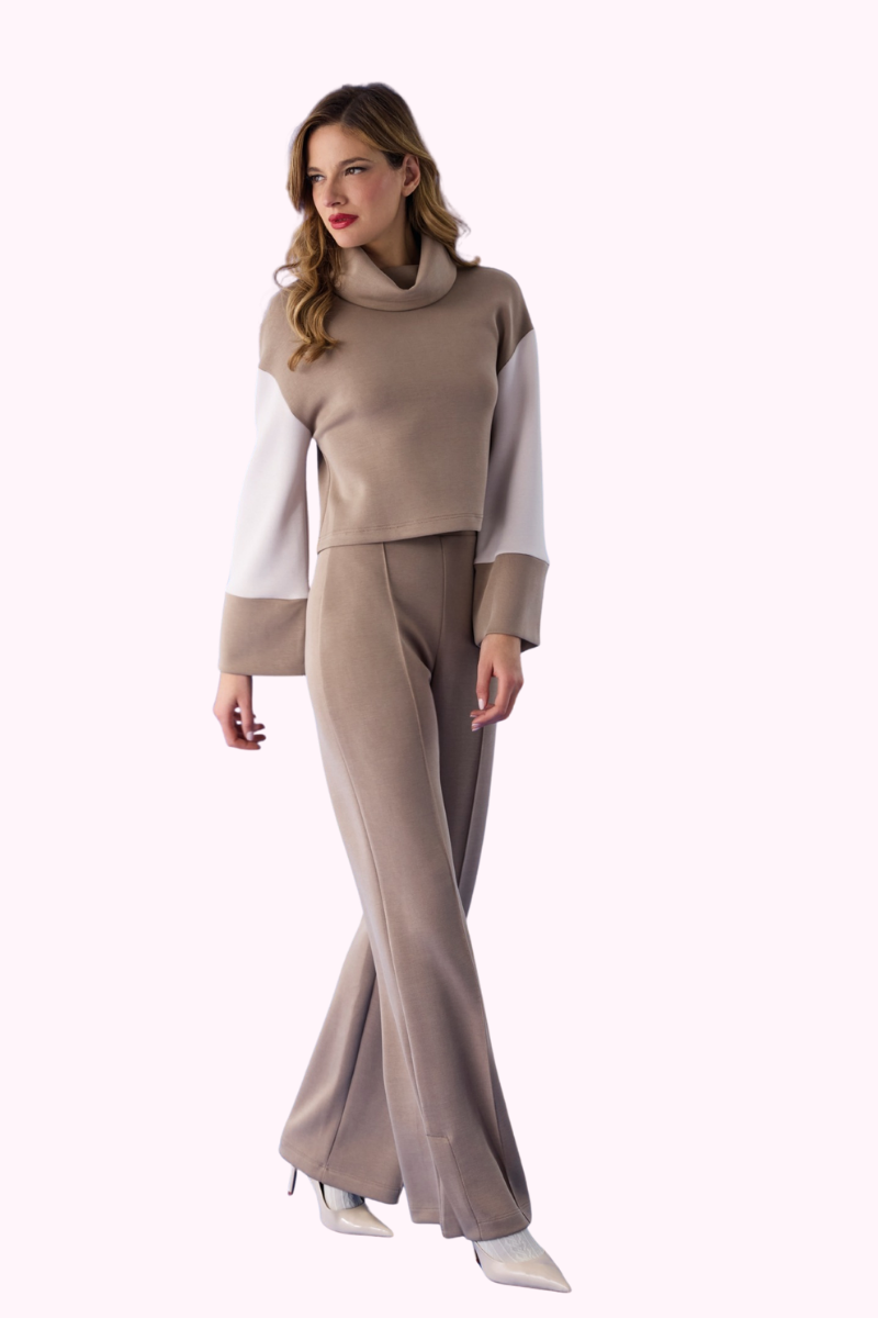 Una maglia/felpa moda dal design contemporaneo e raffinato. Realizzata in morbida viscosa, presenta un elegante scollo morbido a cratere che dona fluidità al capo e lo rende estremamente versatile.