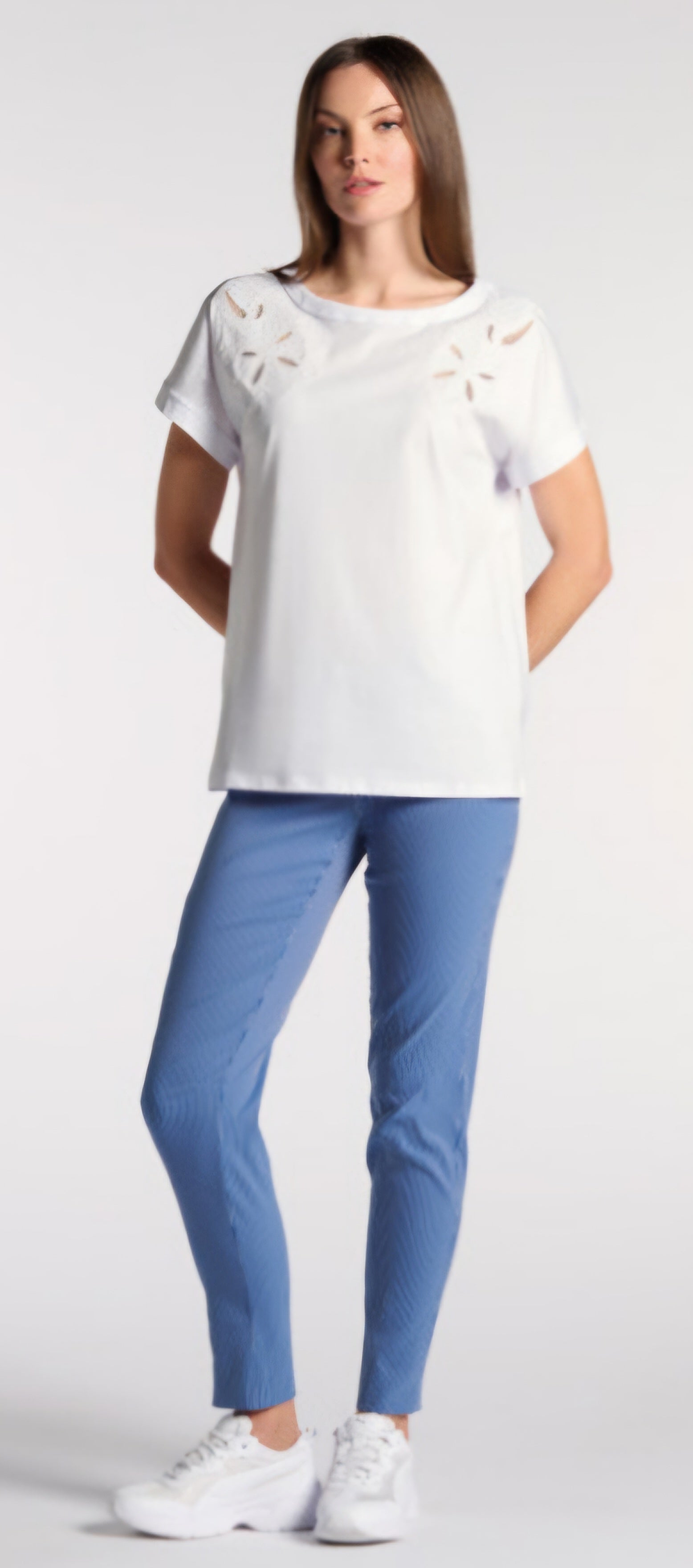 Caratterizzato da una linea a sigaretta con spacchetto laterale sul fondo e comodo elastico in vita.