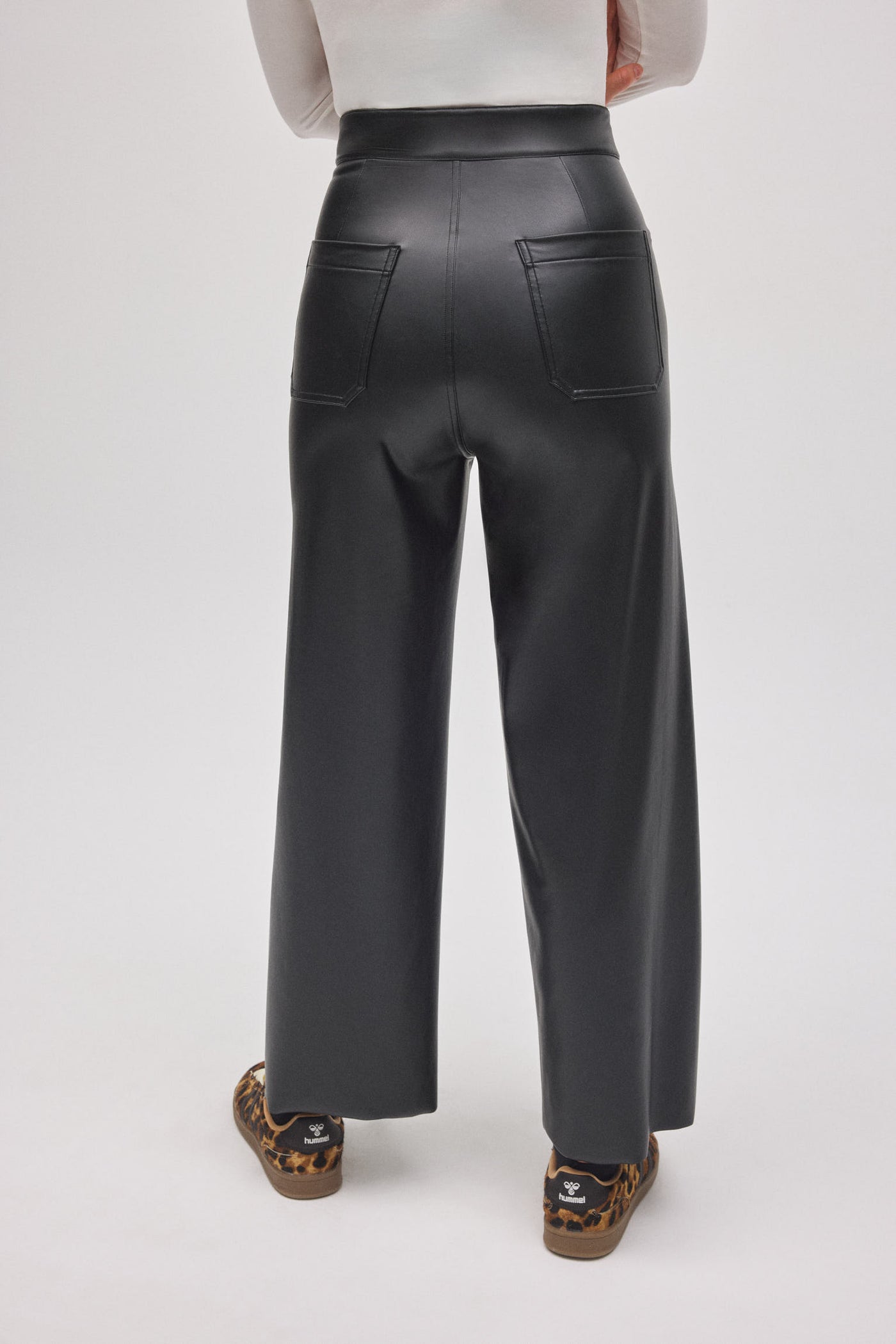 La gamba ampia scivola leggermente lungo la figura, regalando un look fluido e slanciato. Il design minimal con bottone nascosto e le tasche posteriori rendono il modello pulito, chic e super attuale.
