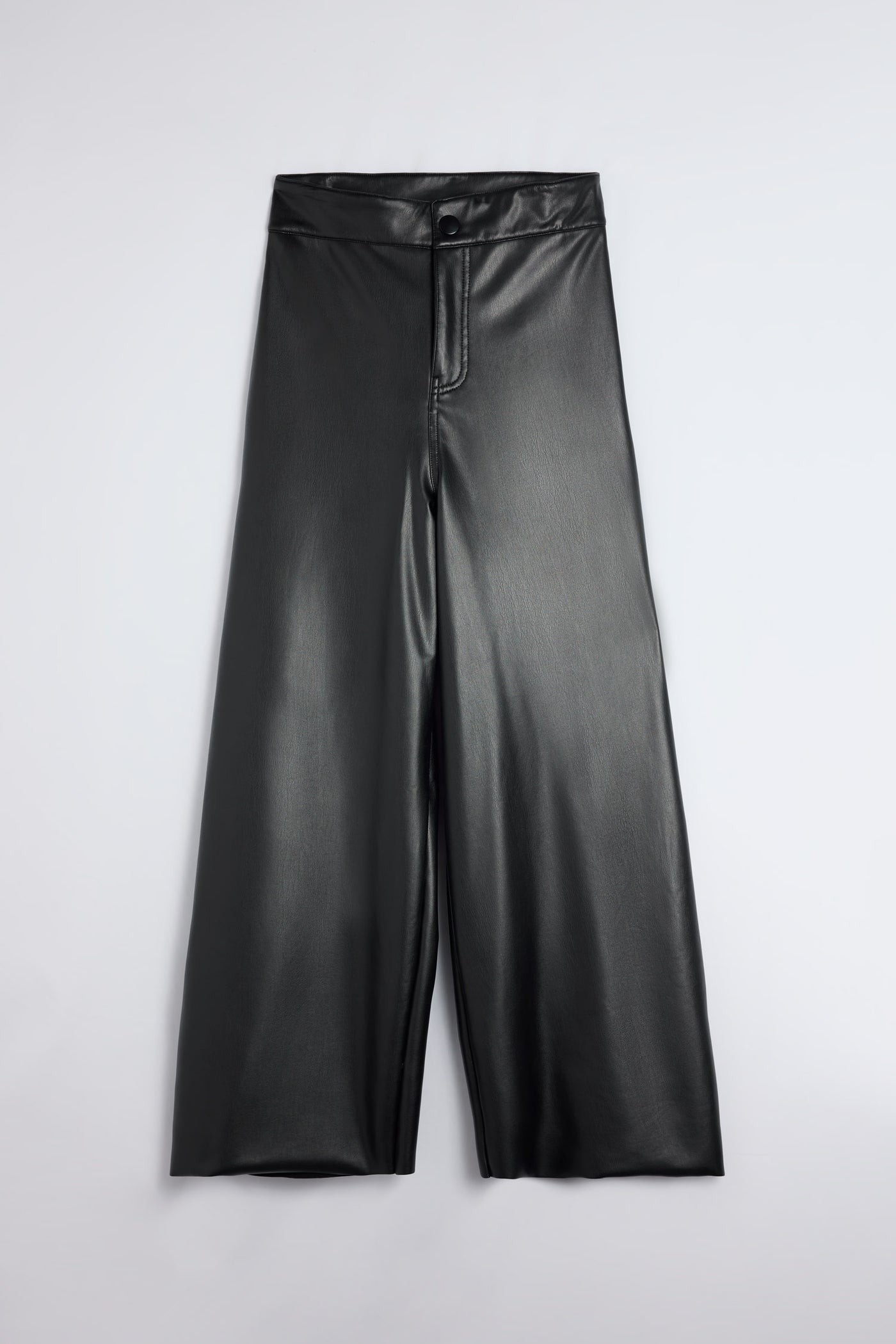 Pantaloni wide leg in similpelle con vita alta e linea morbida. Grazie all’interno in felpa calda offrono comfort e protezione dal freddo, mantenendo un’estetica moderna e sofisticata.