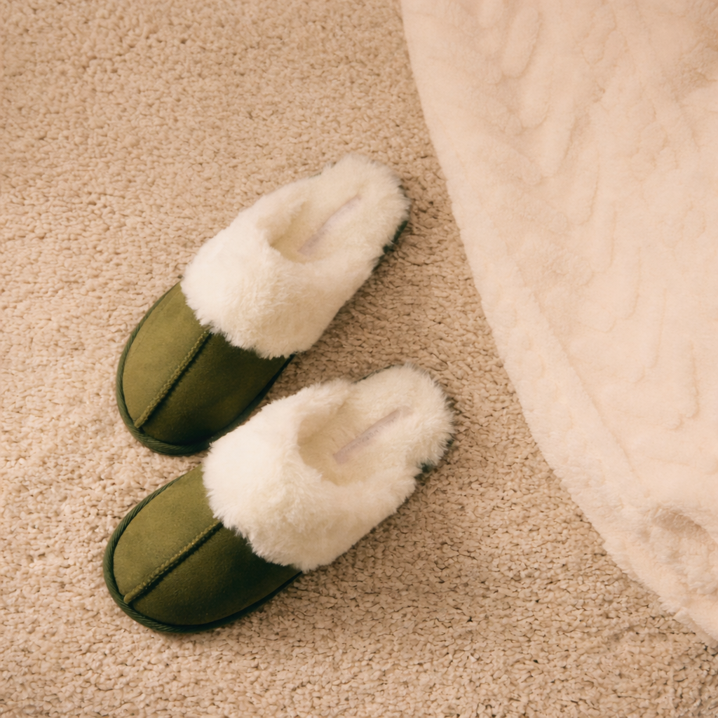 Pantofole dal design avvolgente e confortevole, ideali per accompagnarti nelle giornate più fredde. L’esterno in morbido effetto scamosciato dona un look elegante e naturale, mentre l’interno completamente foderato in pelliccia regala una sensazione di calore e morbidezza ad ogni passo.