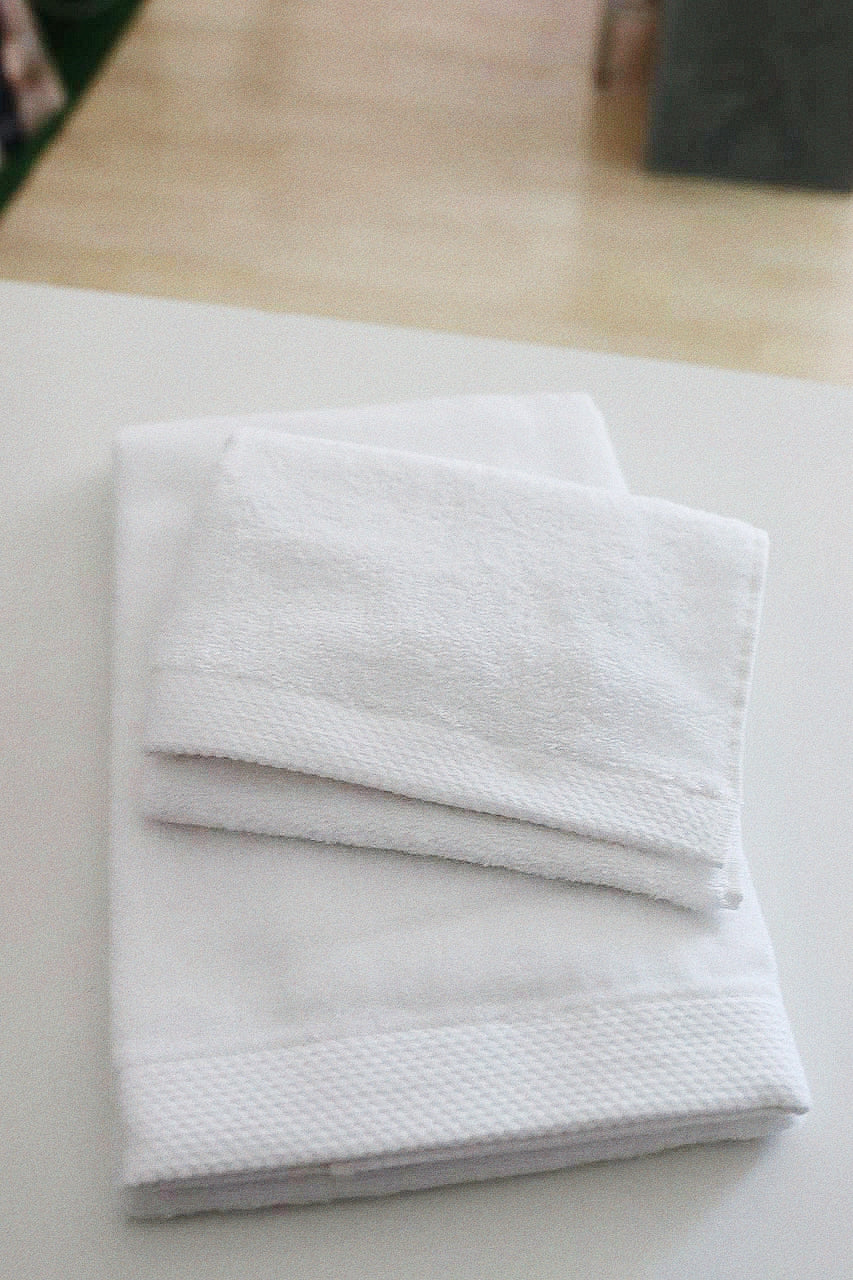 Questo set, composto da asciugamano e ospite, è realizzato in spugna idrofila 100% cotone pettinato da 550 g/m², una grammatura che assicura morbidezza avvolgente, elevata capacità di assorbimento e resistenza nel tempo.