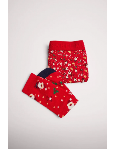 Set di boxer e calzini con stampa natalizia. Questo completo festivo è progettato per aggiungere un tocco di gioia e divertimento al tuo guardaroba delle feste.
