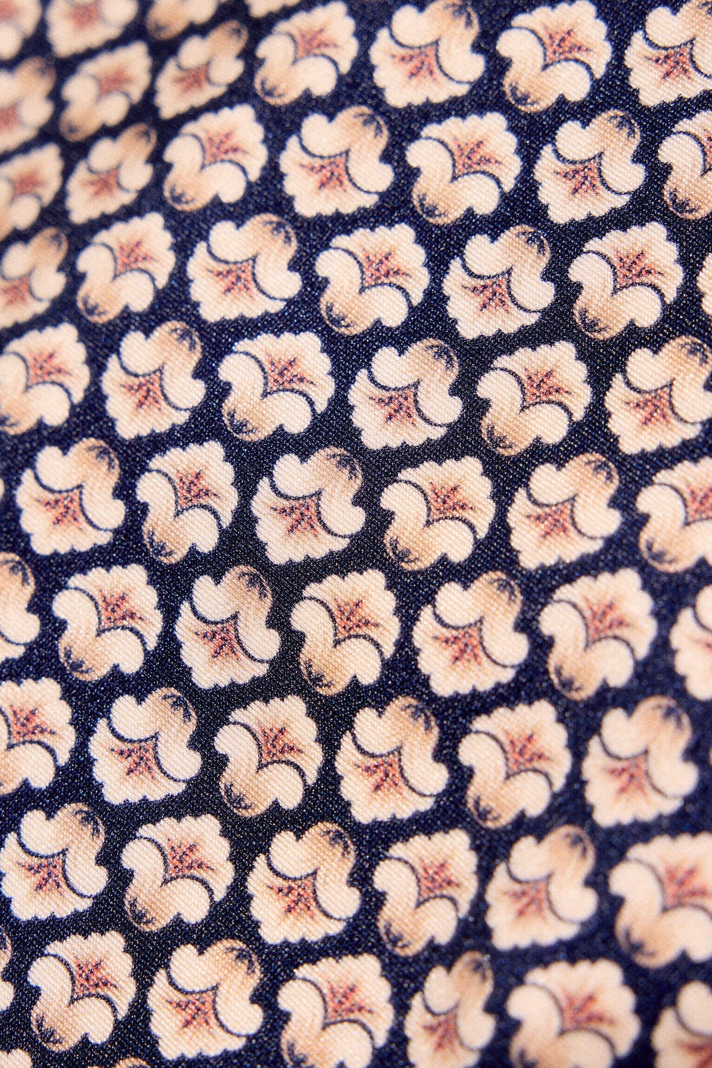 Stampa etnica a fiorellini lurex, con dettaglio nodo laterale per valorizzare la figura.