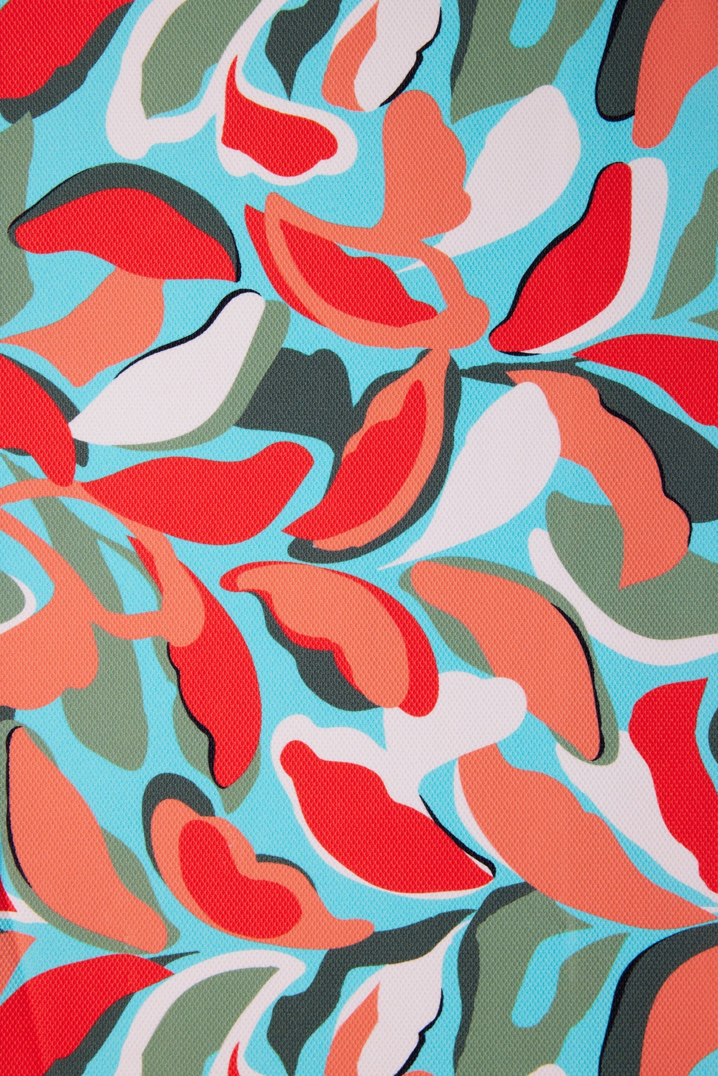 Top bikini con fantasia colorata e decisa, ispirata a forme naturali stilizzate.