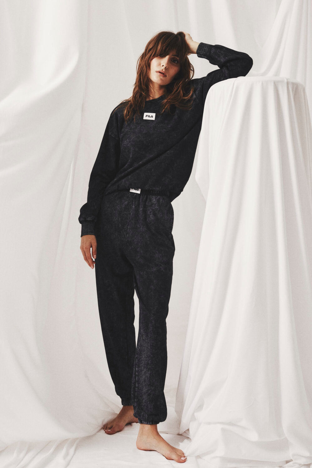La felpa girocollo presenta il logo FILA applicato sul petto, mentre il pantalone con vita elasticizzata e fondo caviglia assicura comfort e libertà di movimento.