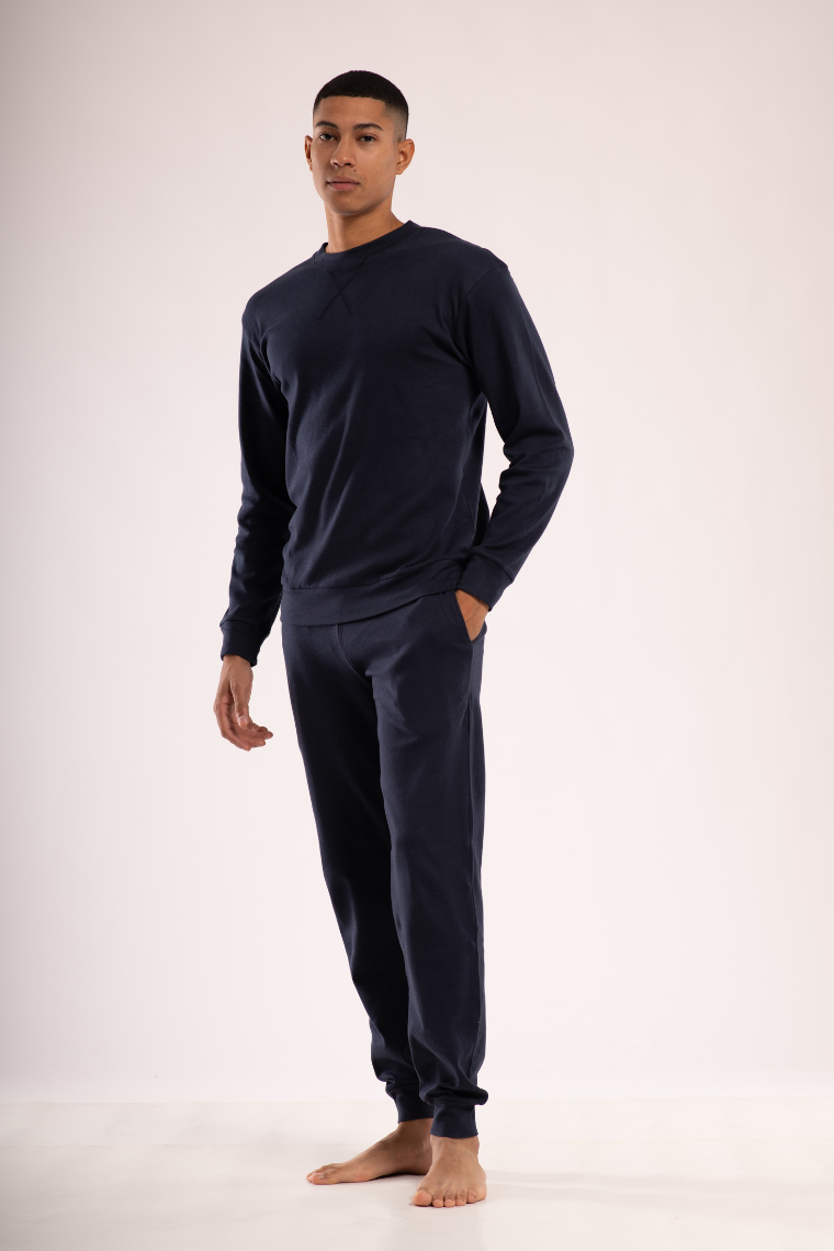 Pigiama uomo in caldo cotone, maglia a girocollo.